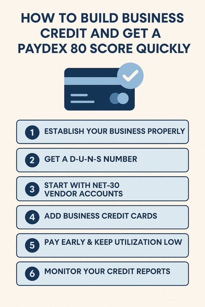 Meta Description: Learn how to build business credit and achieve a PAYDEX 80 score quickly in 2025. Discover proven steps, vendors, and funding strategies for business growth.