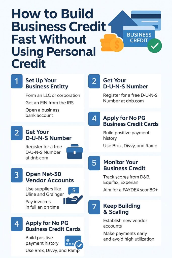 Here’s a step-by-step guide on how to build business credit fast without using personal credit — plus proven business funding tips to get approved for high-limit credit and financing.