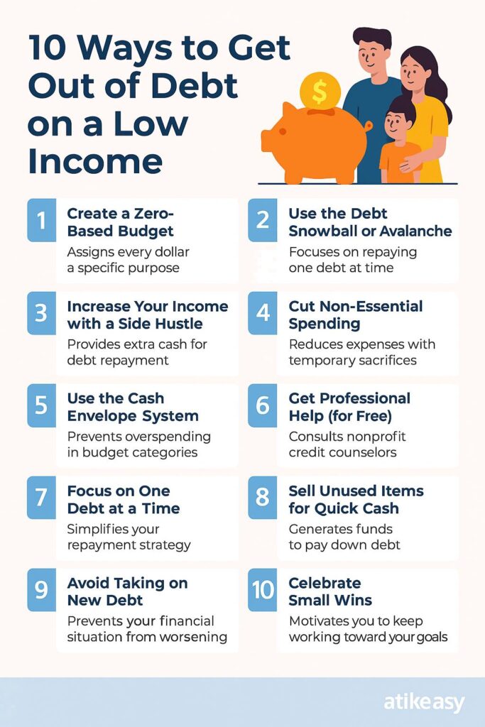 Living paycheck to paycheck while trying to pay off debt can feel impossible. But here’s the truth — you can get out of debt on a low income, and thousands of people do it every year. With the right strategies and a shift in mindset, you can start your debt-free journey today — even if you’re earning less than you’d like.