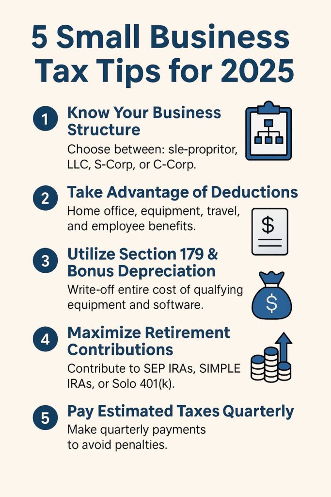 Meta Description: Discover smart tax planning tips for small businesses in 2025. Learn deductions, credits, and strategies to save money and boost cash flow.
