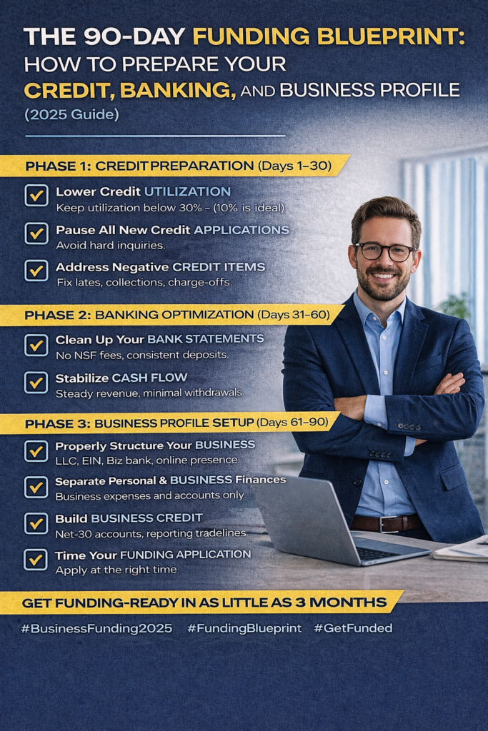 This guide breaks down the exact 90-Day Funding Blueprint smart entrepreneurs use to qualify for $20K–$250K+ in personal and business funding.