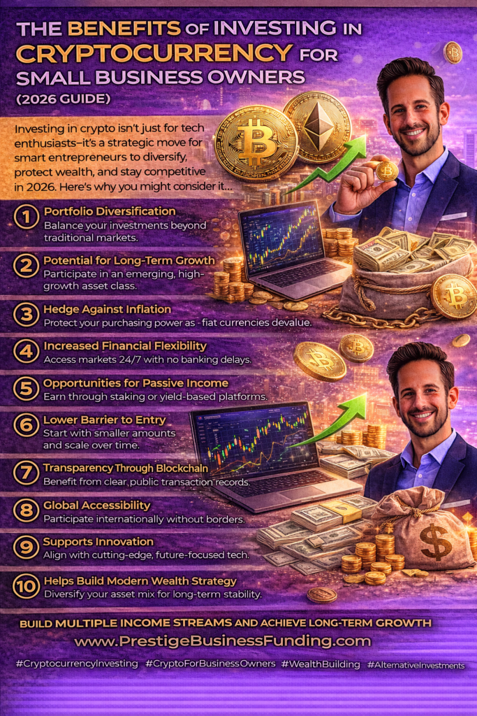 Cryptocurrency is no longer just a trend for tech enthusiasts. In 2026, more small business owners are exploring cryptocurrency as a strategic investment and diversification tool to protect capital, grow wealth, and stay competitive in a rapidly changing financial landscape.