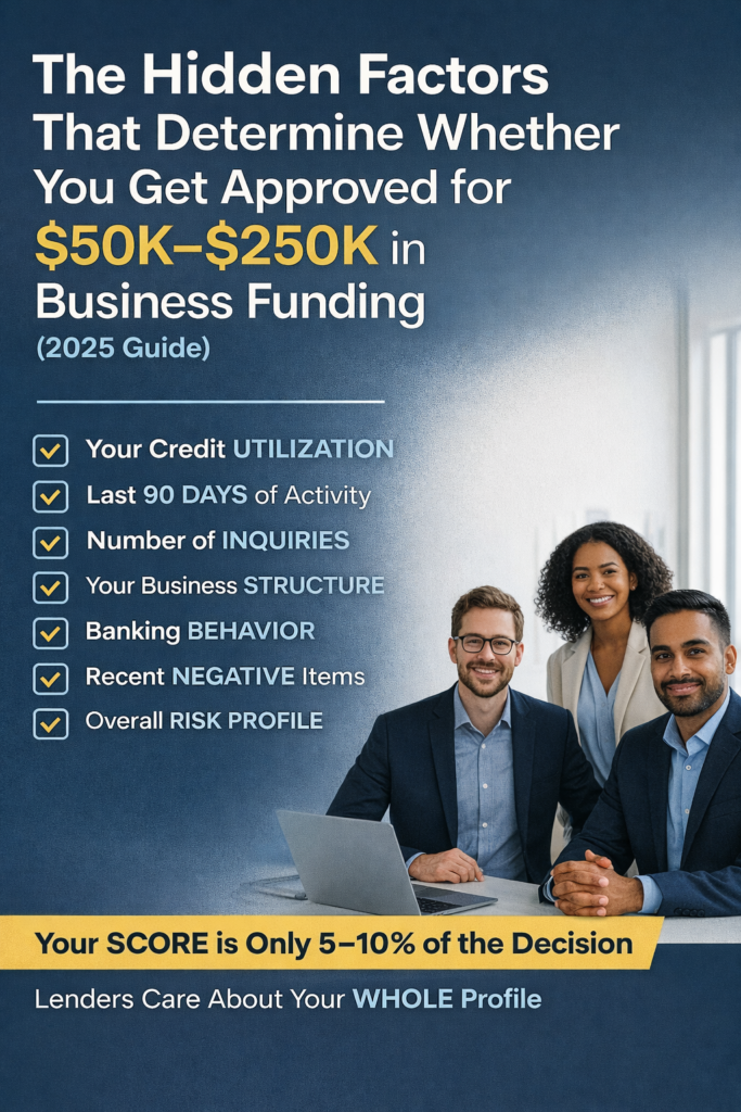 Meaning: your banking behavior, utilization, business setup, inquiries, credit depth, revenue patterns, and even TIMING matter far more than the score alone.