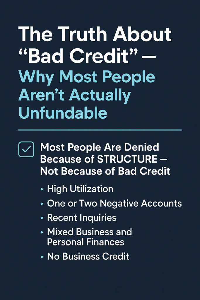 You are NOT unfundable — you just need the right funding strategy, not a perfect credit score.
