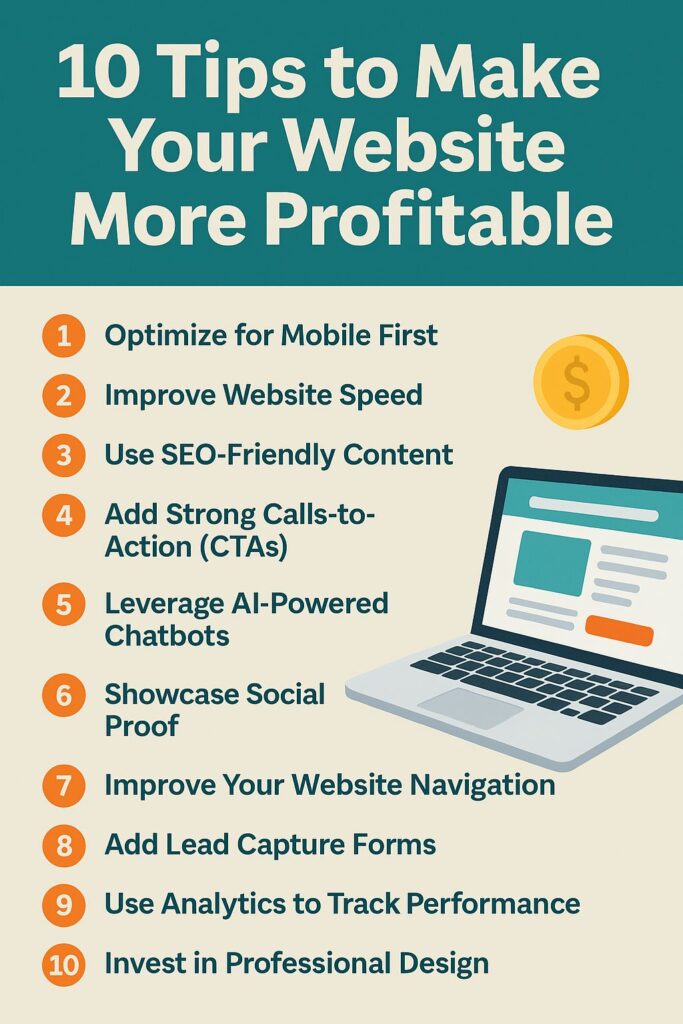 Meta Description: Discover the top 10 tips to make your business website more profitable in 2025. Boost sales, traffic, and conversions with smart digital strategies.