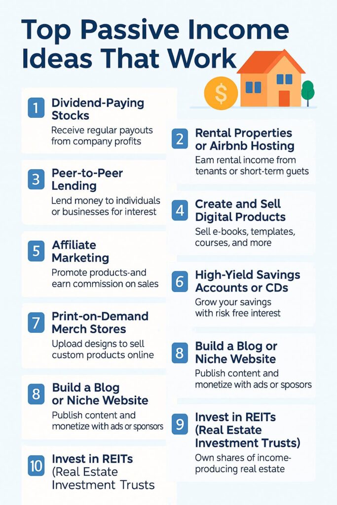 What if your money could work for you—even while you sleep? That’s the power of passive income. In today’s digital economy, generating income without trading your time for dollars isn’t just possible—it’s essential for long-term wealth. Whether you’re looking to escape the 9-to-5, supplement your job, or build financial freedom, these top passive income ideas that work in 2025 are the real deal.