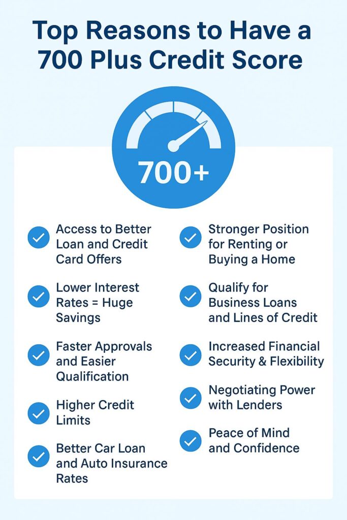 Having a 700+ credit score in 2025 is more than just a goal — it’s a financial asset. Whether you want to save money, secure a home, grow your business, or just feel confident, the benefits of a high credit score are undeniable.
