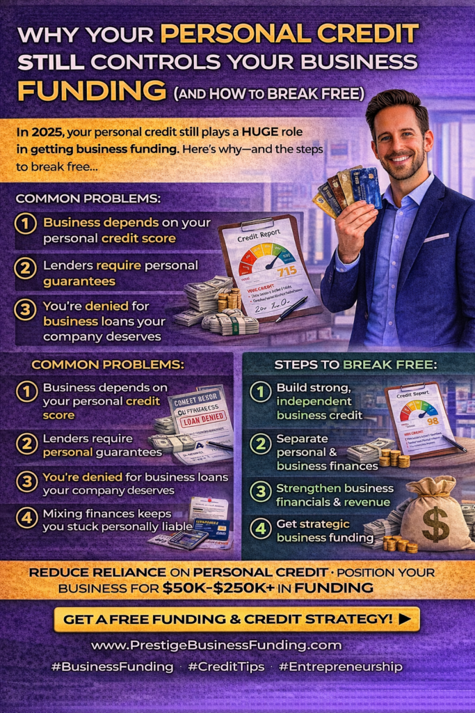 👉 In 2025, your personal credit still controls your business funding — until you deliberately break the link.